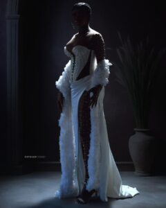 - High slit on one side, adding a touch of sensuality